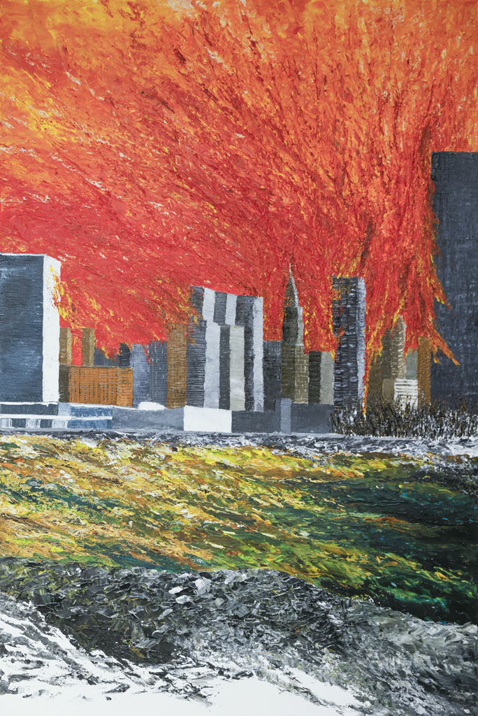 Bernard Chang founded atelier BERNARD CHANG (aBC) in 2024 after his departure from Kohn Pedersen Fox (KPF), where he served as Principal and led Greater China and S.E.Asia sustainability-focused projects. Expanding into the arts, he translates his architectural vision into paintings that reflect Global Warming and its impacts to our Cities, Nature, and Humanity; and contemplate our shared responsibility to future cities, ecological preservation, and human well-being. Bernard holds a Master of Architecture degree from Harvard University Graduate School of Design and a Bachelor of Architecture degree with High Distinction from California College of the Arts.